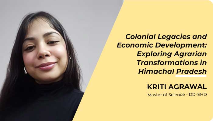 Kriti Agrawal supervised by Dr. Aniket Alam received her Master of Science – Dual Degree in Exact Humanities (EHD). Here’s a summary of her research work on Colonial Legacies and Economic Development: Exploring Agrarian Transformations in Himachal Pradesh: