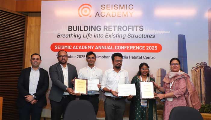 Chedapangu Seema, M.Tech student at the Earthquake Engineering Research Centre (EERC) received high appreciation from the expert panel for her research work on AI-Driven Automated Screening for Seismic Vulnerabilities in Buildings at the Seismic Academy Annual Conference 2025, held in New Delhi, and organized by HILTI India. Seema was honoured with the top presentation award, recognizing the project’s potential to enable large-scale, data-driven seismic vulnerability assessment, contributing to a safer and more resilient built environment.