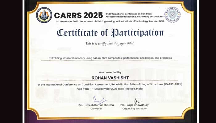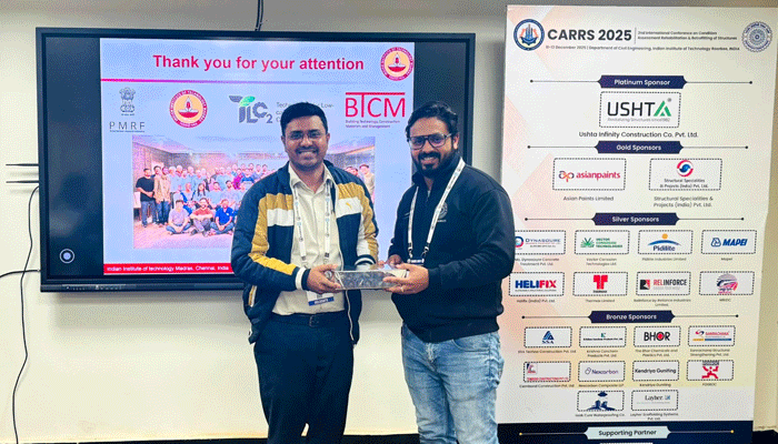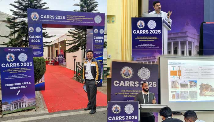 Dr. P Pravin Kumar Venkat Rao and his students presented the following papers at the 2nd International Conference on Condition Assessment, Rehabilitation & Retrofitting of Structures (CARRS-2025), organized by the Department of Civil Engineering, Indian Institute of Technology Roorkee from 11 – 13 December: