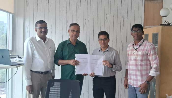 IIITH and Sevaspoorthi Foundation, an NGO working for the welfare of the farmers community signed an MoU on 21 August. Present on the occasion were Prof. P Krishna Reddy, Prof. C V Jawahar, V Vijaya Bhaskara Reddy, President, SevaaSpoorthi Foundation; G Ratnakar, Project Manager, Sevaaspoorthi Foundation.