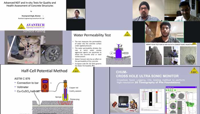Mr. Parampreet Singh, Director at Avantech Engineering Consortium Pvt. Ltd, gave an online lecture on Advanced NDT Methods for Assessment of Concrete Structures for Strength, Integrity and Corrosion on 26 March, as part of the IASTRUCTE – IIIT Hyderabad Student Chapter lecture series.