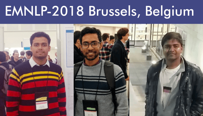IIITH students, Raghuram Vadapalli, Vishal Gupta and Vinay Singh from Language Technologies Research Center (LTRC) presented papers at the Empirical Methods in Natural Language Processing (EMNLP 2018) at Brussels, Belgium.