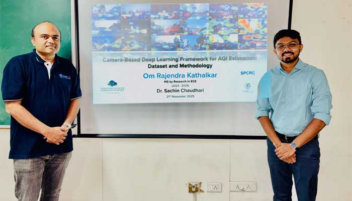 November 21st 2025 is a date very close to Om Kathalkar’s heart. It was the day he successfully defended his thesis as an MS by Research student at the Signal Processing and Communication Research Centre (SPCRC) at IIITH. “Two international conference papers, two patents, two one-of-a-kind datasets, and two technologies have emerged from this thesis,” remarks Prof. Sachin Chaudhari, his advisor with heartfelt pride. Apart from Om’s valuable contributions to one of India’s most pressing challenges, that of scalable urban air quality monitoring, his work on the Pandora project – a multi-partner EU-funded research initiative – has earned him an on-site invite (to Greece) by Prof. Konstantinos Tserpes, Deputy Coordinator of the PANDORA project and key representative of the National Technical University of Athens.
